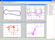 On the basis of the measured lateral acceleration, speed and yaw rate, the software generates the circuit or track profile and automatically divides the track to straight sections and bends. Geodetic coordinates measured by GPS can be converted to local tangential orthogonal coordinate system. Trajectory tool integrated in this module can be used to analyze the track and create the model of trajectory.